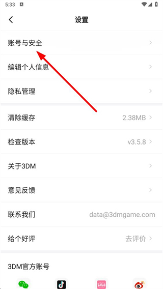 3、在设置界面中,找到账号与安全选项并点击,进入账号相关页面。
