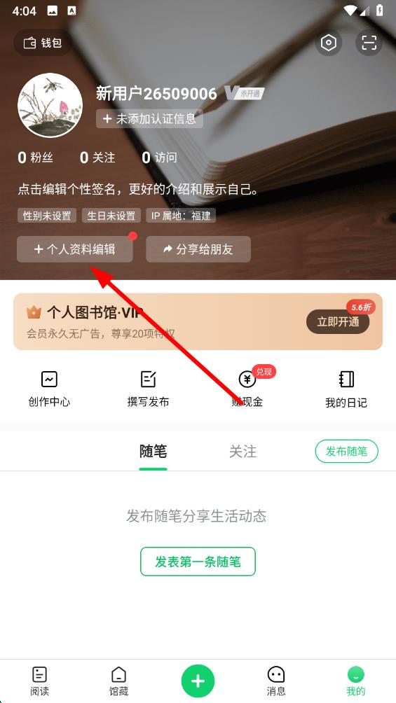 2、在个人页面中,点击个人资料编辑按钮,进入资料编辑界面。
