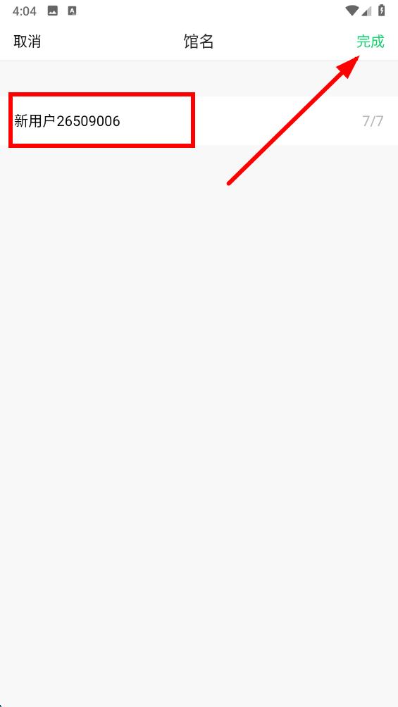 4、在馆名修改页面,输入新的用户名,然后点击完成按钮,即可完成用户名的修改。