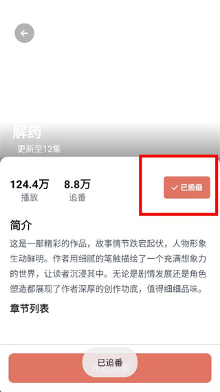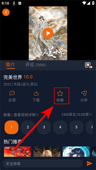 4、在播放页面中找到收藏,点击它就能将该动漫收藏啦。