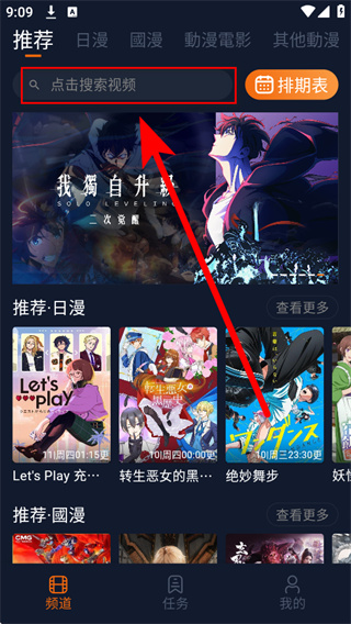 2、在搜索框中输入要收藏的动漫名称,点击搜索按钮。