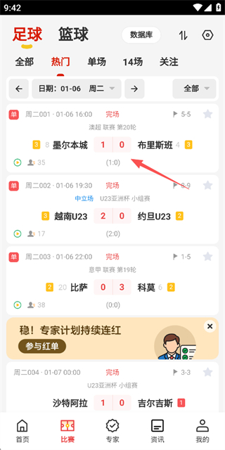 覆盖足篮热门赛事,新鲜资讯及时推送。