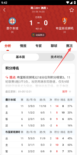 3、在赛事详情页面点击赛况选项,查看该赛事的赛况信息。