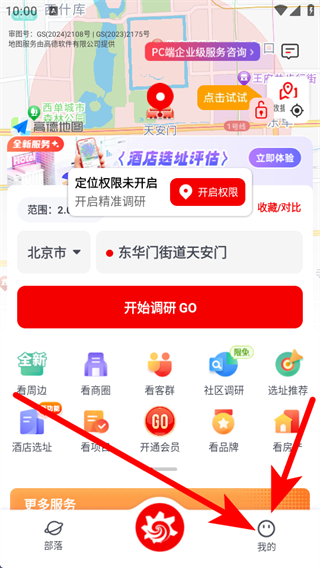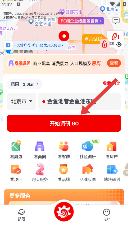 1、在边界猎手首页,设置调研区域后,点击开始调研GO按钮,进入详情页面。
