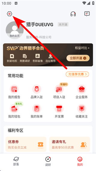 1、打开边界猎手APP,点击右下角我的,进入个人页面。