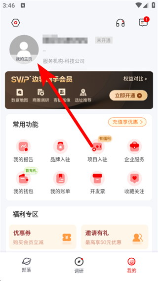 2、在个人中心页面,点击我的主页,进入主页的界面。
