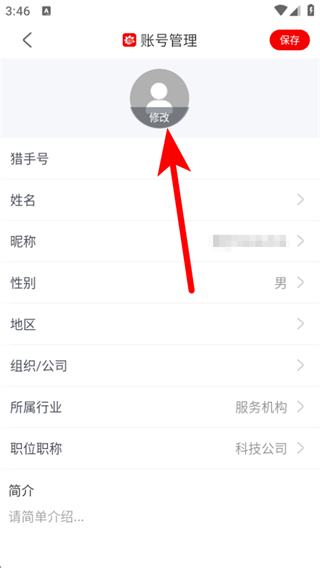 4、在账号管理页面,点击头像处的修改,即可按照提示流程修改。