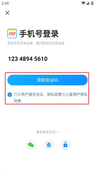 4、勾选同意相关协议的选项,点击获取验证码按钮,等待接收对应的验证信息。