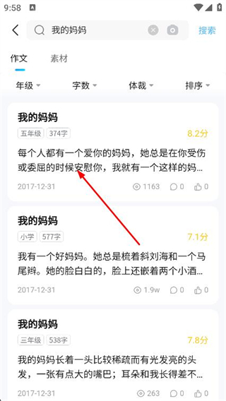 4、在搜索结果中点击想要查看的作文,即可完成操作。