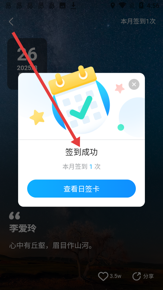 2、在个人页面里,点击左上角每日签到图标,进入签到页面。