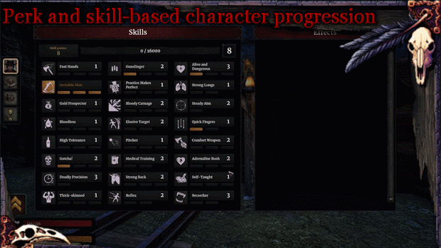 游戏融合了西部风格与哥特式恐怖元素,独特的艺术设计与氛围营造让人感受到浓厚的西部情怀与恐怖氛围。