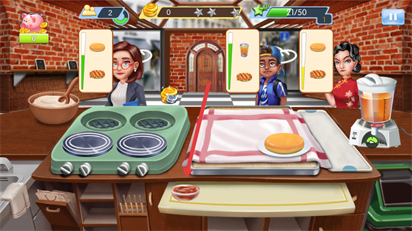4、厨师的烹饪过程非常有趣,玩家可以根据配方添加不同的配料。
