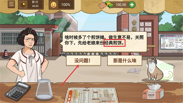 1、顾客点【经典煎饼】时选【没问题】接订单,及时回应需求。