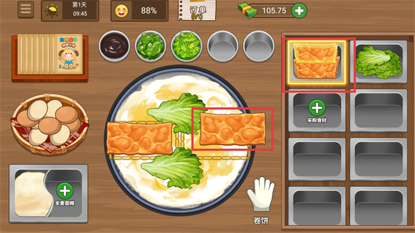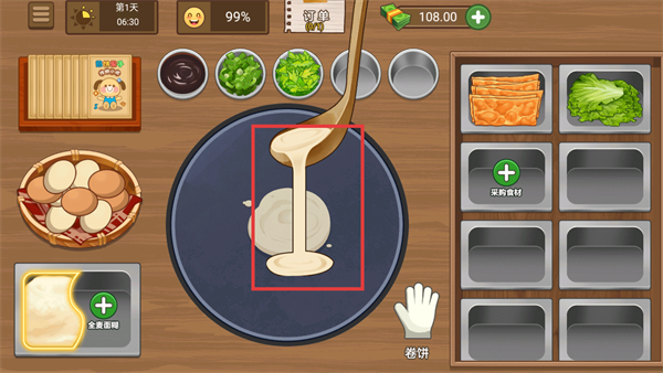 2、随着经营升级解锁多样食材,丰富的搭配组合可打造专属特色煎饼,吸引更多客源。