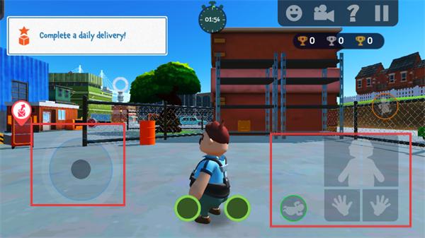 2、依据【Complete-a-daily-delivery!】提示,通过左侧摇杆控制移动,右侧按键操作角色动作。