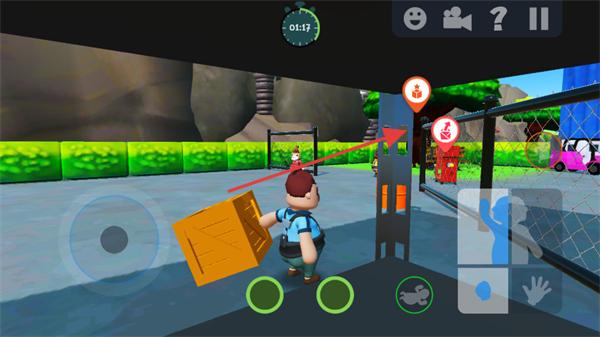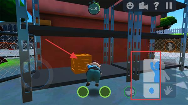 3、操控角色靠近货架上的箱子,使用右侧动作按键拾取该箱子,准备进行配送任务。