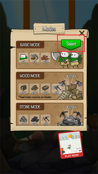 2、点击【红色框】内基础模式的绿色【Select】按钮,选定基础模式开始游戏。