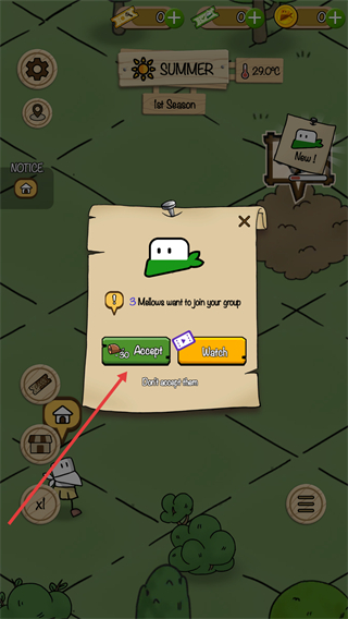 4、沿【红色箭头】点击绿色【Accept】按钮,接受该角色加入队伍。
