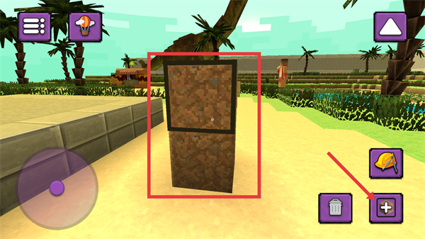 4、点击右侧的建造按钮,选择砖块等材料,在空地上放置方块,逐步搭建房屋或其他建筑结构。