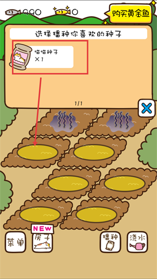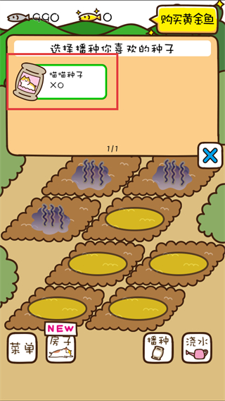 3、在播种界面选定【喵喵种子】,点击下方土地完成播种,种子进入土地生长阶段。