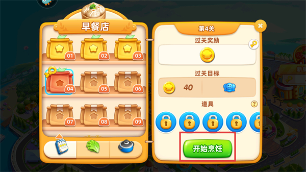 1、进入【早餐店】第4关界面,点击【开始烹饪】按钮开启本关经营挑战。