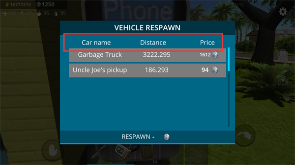 2、在【VEHICLE-RESPAWN】界面中,可消耗对应资源解锁【Garbage-Truck】或【Uncle-Joe's-pickup】车辆。
