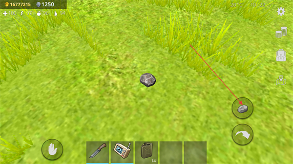 3、在草地场景发现【石头】资源时,点击对应图标拾取,补充生存所需的物资储备。