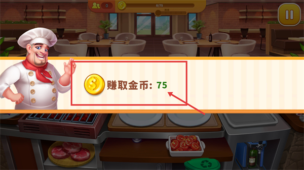 2、进入关卡后,会出现【赚取金币:75】的提示,这是该关卡的目标收益,后续需完成订单来达成此金币获取量。