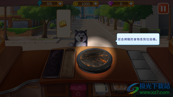 3、如果时间久了食物糊了,或者是制作错误就可以通过双击将食物丢到垃圾桶里,然后重新制作。