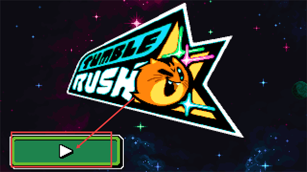 1、进入【Tumble-Rush】的启动界面后,找到界面内的绿色播放按钮并点击,这是开启该游戏游玩流程的必要初始操作。