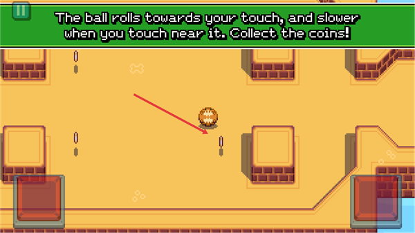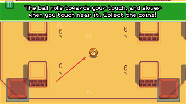 3、掌握规则,球随触摸滚动,近触减速,需收集场景中的硬币。