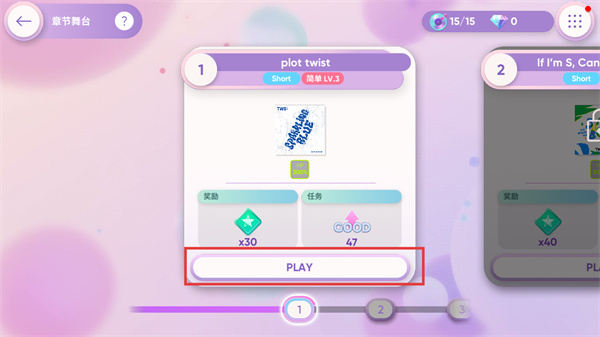 2、在章节舞台选择曲目,点击【PLAY】按钮开始演奏关卡。