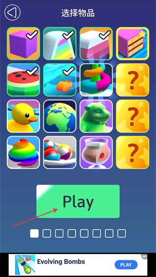 1、在【选择物品】界面勾选已解锁物品,点击【Play】按钮,进入对应的关卡开启游戏进程。