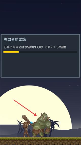 1、在【勇敢者的试炼】任务中,利用自动杀怪物的天赋攻击怪兽,当前进度为击杀2/10只怪兽。