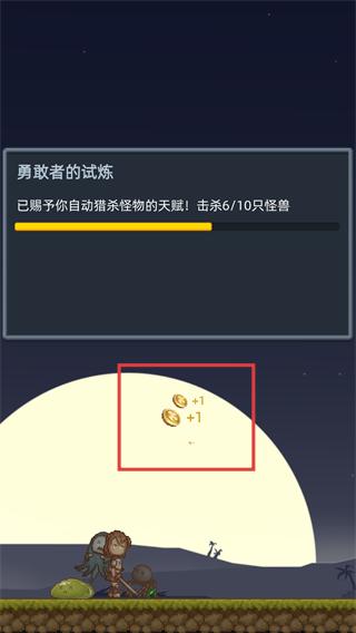 2、击杀怪兽后会获得【+1】金币奖励,任务进度推进至击杀6/10只怪兽,持续积累资源。