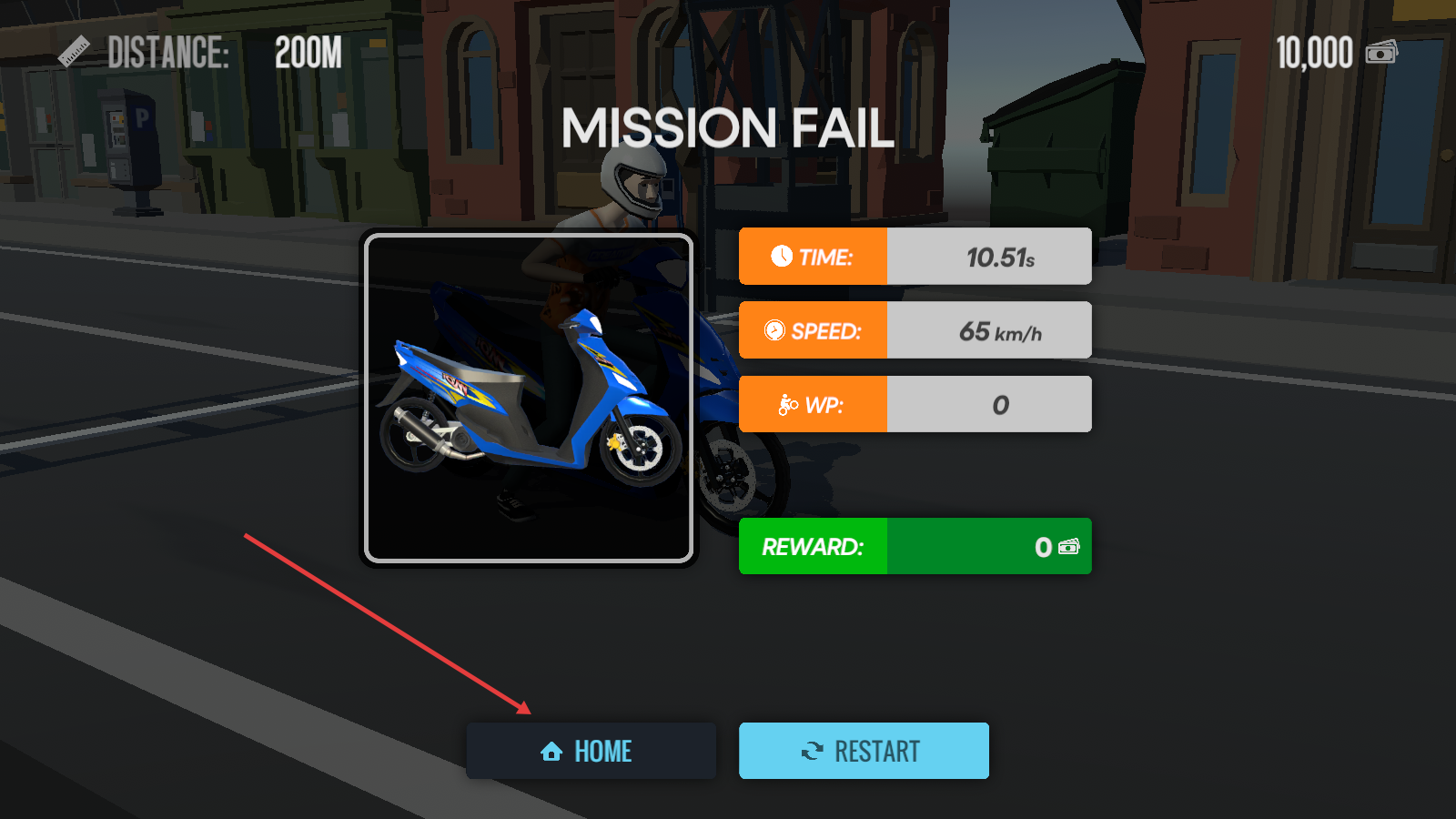 4、若触发【MISSION-FAIL】,可点击【RESTART】重玩关卡,或点【HOME】返回主界面调整策略。