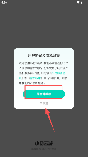 1、阅读协议后点“同意并继续”,授权使用信息即可进入小叨云游首页。