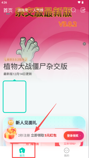 3、在最新版横幅点“立即领取”,抢先体验12月14日更新的植物大战僵尸杂交版。