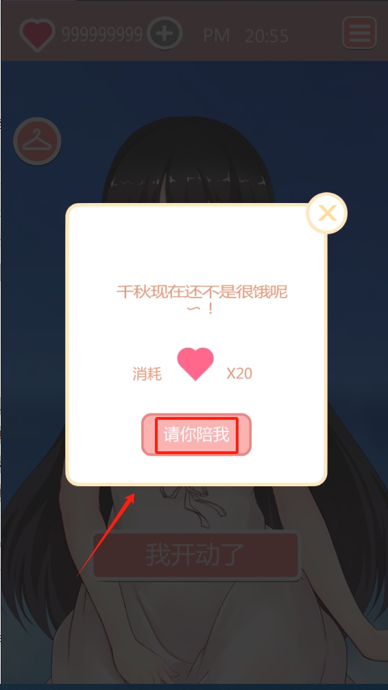 3、点击“请你陪我”按钮,继续与千叶千秋互动。