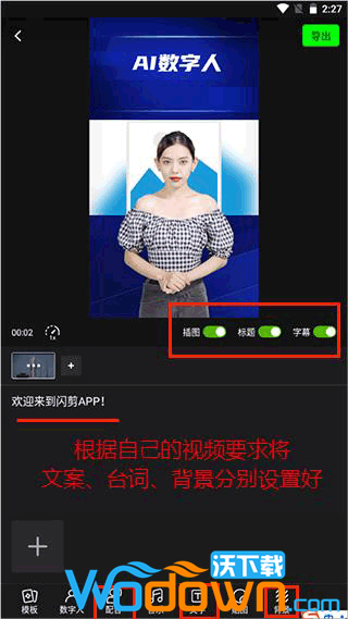 系统自动匹配数字人口播内容,点击【导出】即可生成视频