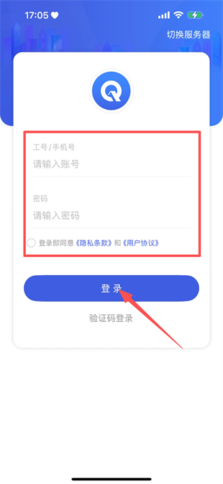 3、在登录页,填写工号/手机号账号和密码请输入密码,点击登录。