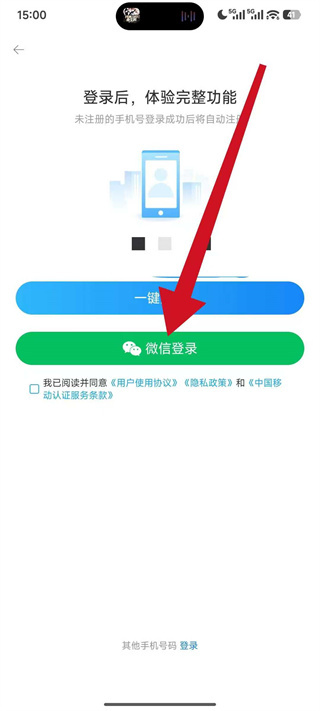 4、在登录页面中,选择微信登录,同时勾选相关协议,按照提示完成微信授权。