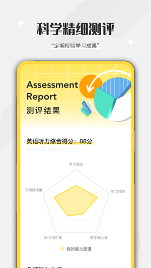 - 各种帮助用户学习英语的资源都可以使用,用户也可以在线进行检测自己的学习情况。