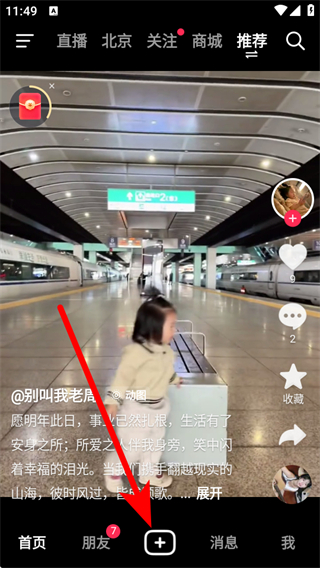 1、打开抖音,点击底部加号,进入作品拍摄界面。