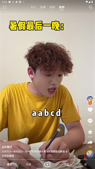 1、打开火山小视频,点击底部导航栏的我,进入个人页面。