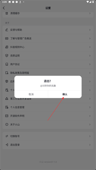 5、此时会弹出退出的确认弹窗,点击确认按钮,即可完成。