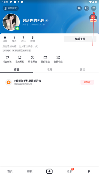 1、启动火山小视频,点击底部导航栏的我的按钮,进入个人页面。