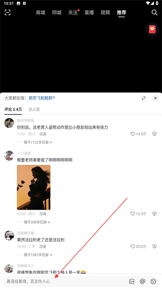 2、当界面弹出评论栏,点击最下方的输入框激活输入法。