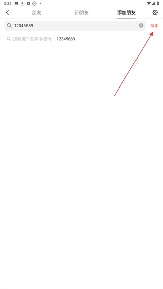4、在添加朋友下,输入抖音号再点击右侧搜索的按钮。