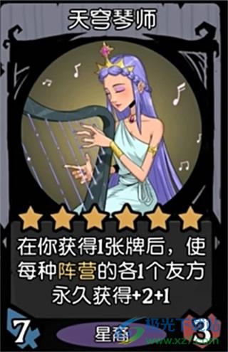 1、天穹琴师是获得一张牌之后就使每种阵营肉各一个友方永久获得加2+1。